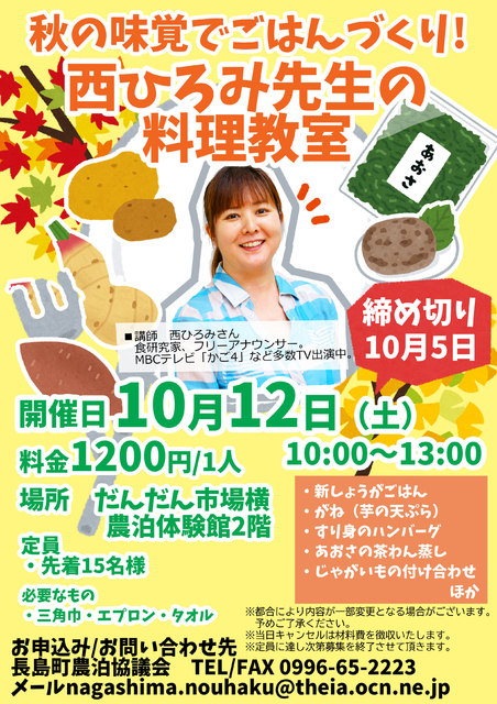 10月12日(土)長島町の道の駅 だんだん市場にて料理教室が開催。