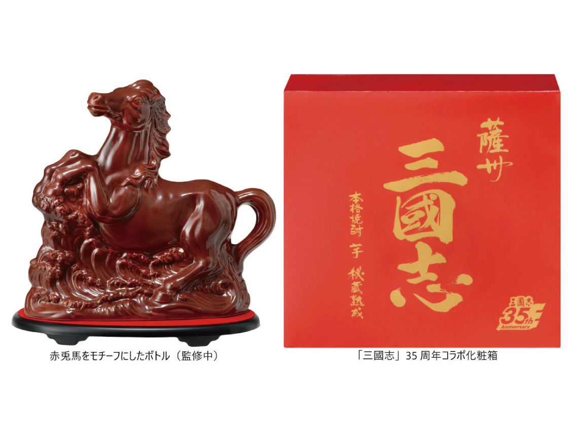 今年シリーズ35周年を迎え、この35周年にちなみ、本格芋焼酎「薩州 三國志」のアルコール度数は35度。
