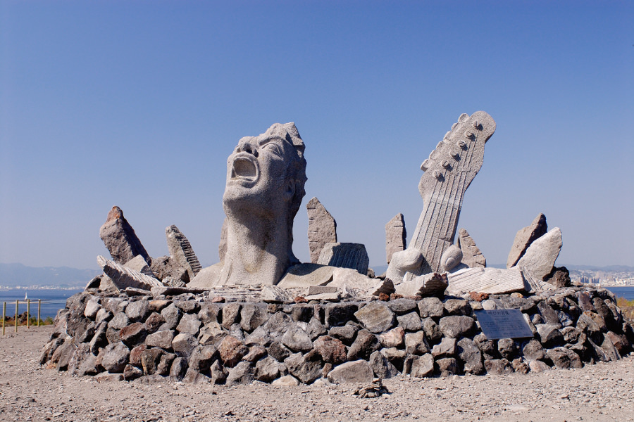 ライブ会場の跡地を整備して作られた赤水展望広場。その広場内に「叫びの肖像」はある。