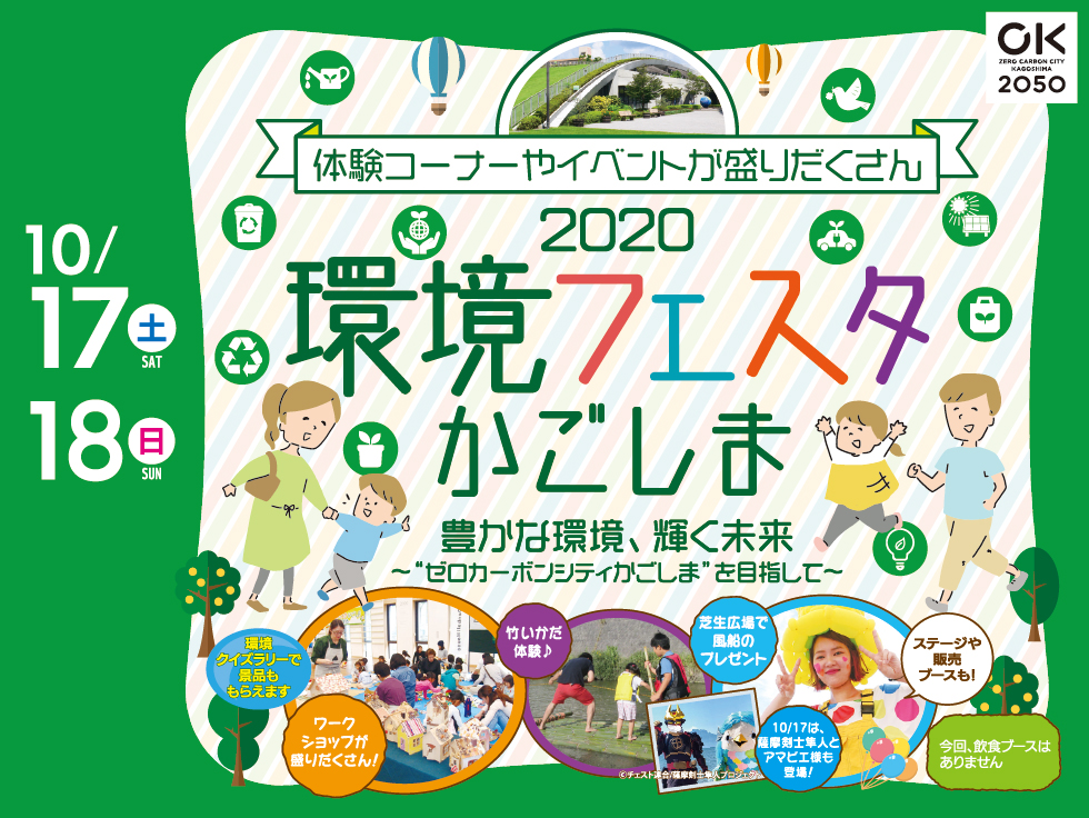 「豊かな環境、輝く未来~“ゼロカーボンシティかごしま”を目指して~」をテーマに、市民・事業者・行政が協働して開催するイベント、「環境フェスタかごしま2020」が開催される。