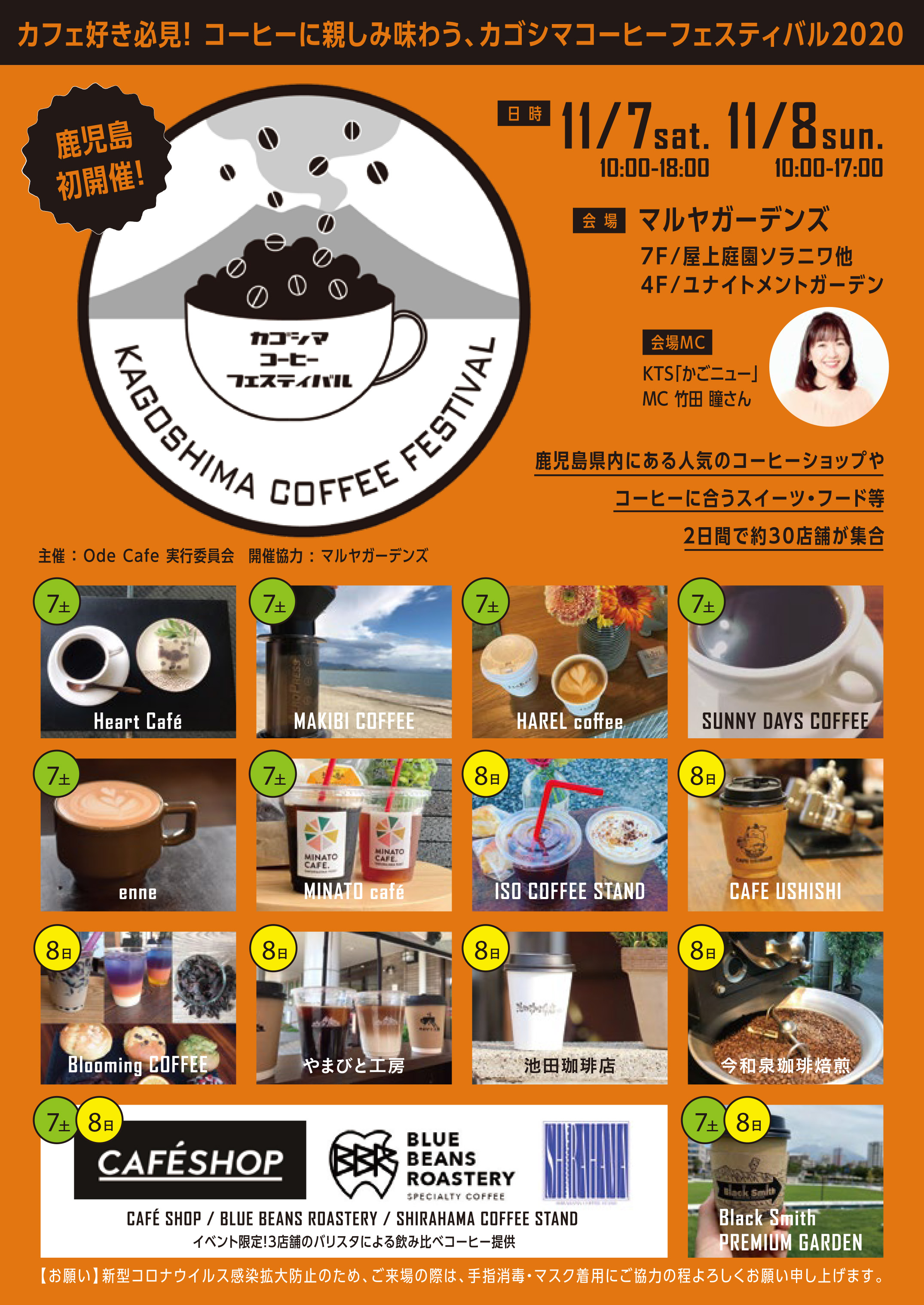 2020年11月7日(土)~11月8日(日)、マルヤガーデンズにてカゴシマコーヒーフェスティバル2020が開催される。