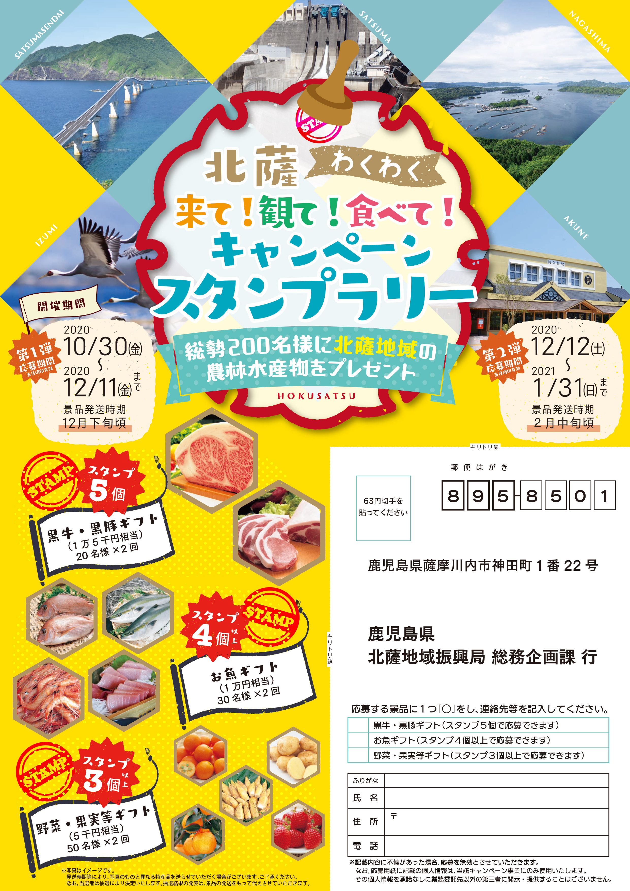 北薩地区を巡るスタンプラリーが開催中だ。阿久根市、出水市、薩摩川内市、さつま町、長島町の21か所の観光地や文化施設、肥薩おれんじ鉄道の車内などにスタンプが設置してある。
