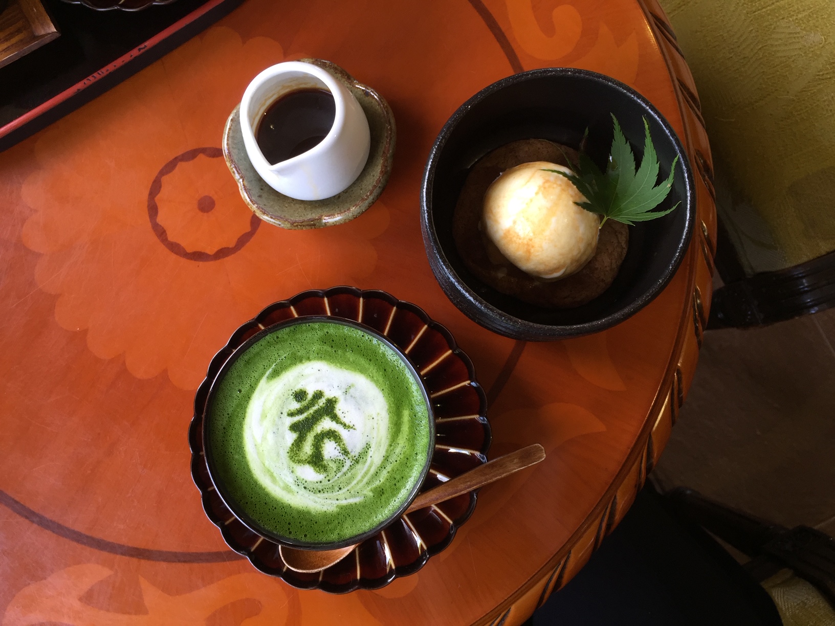 カフェでは摩崖仏にちなんで、梵字がデザインされた梵字ラテを味わうことが出来る。