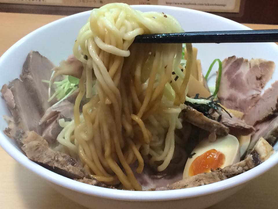 つるつるモチモチとして喉越しの良い中太麺と具材が絡みつく事で様々な旨味があふれ出し、