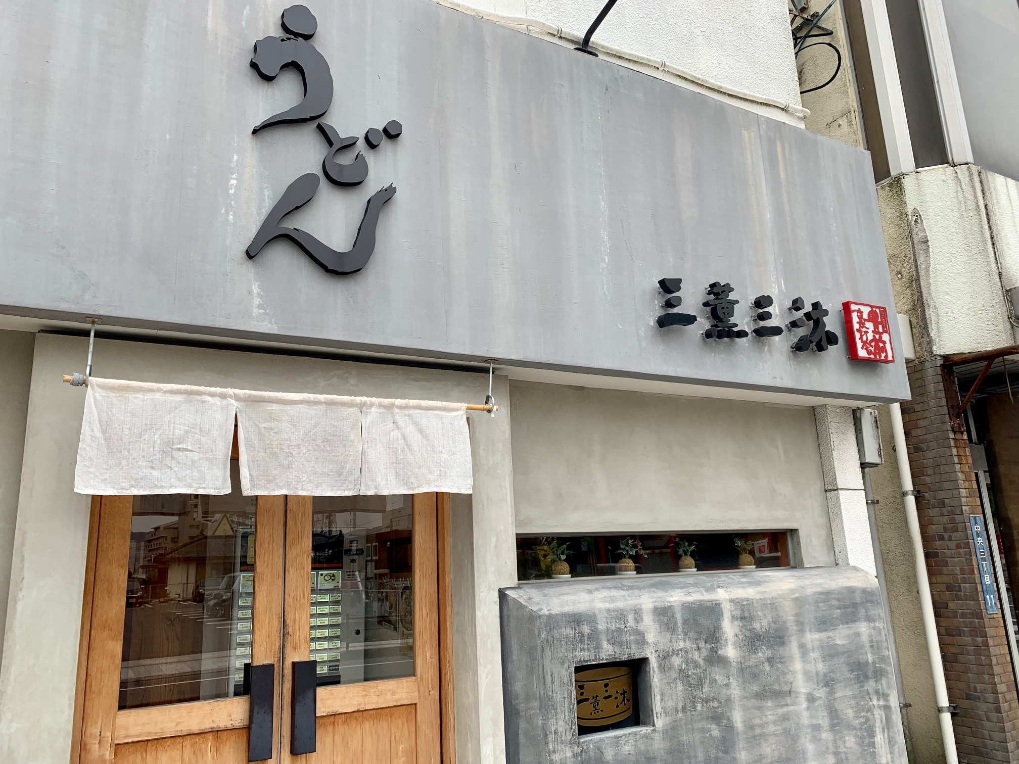 霧島市の山形屋百貨店の目の前に2020年にオープンした「三薫三沐」。オシャレな外観が目を引くうどん専門店だ。