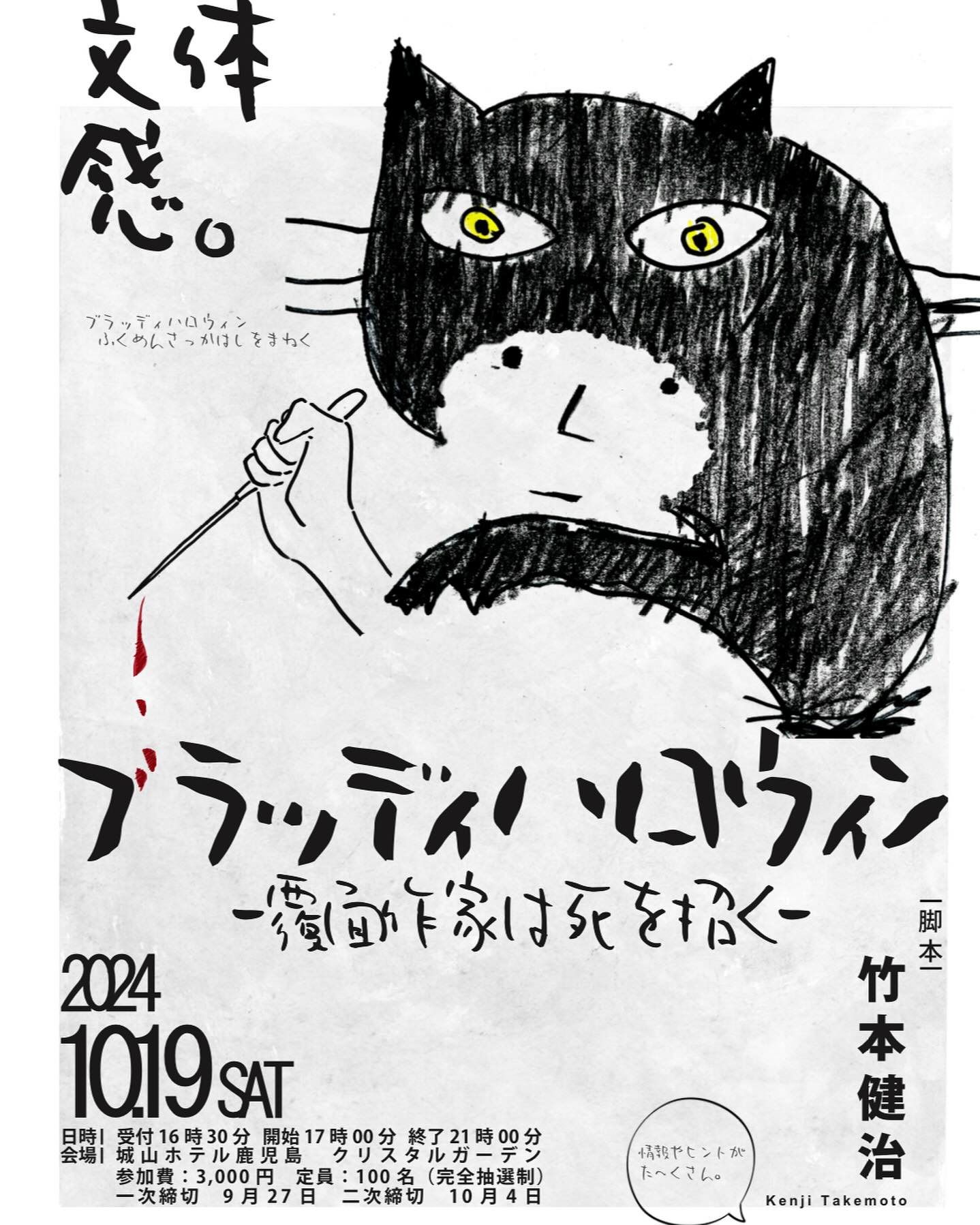 本格体験型ミステリ「ブラッディハロウィン~覆面作家は死を招く~」が城山ホテル鹿児島にて開催されます。