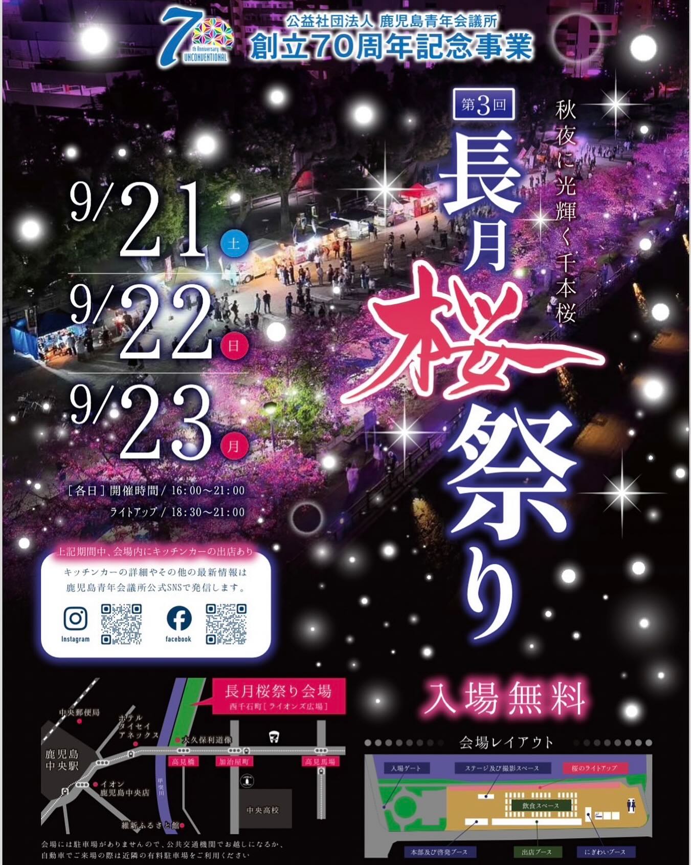 公益社団法人鹿児島青年会議所の主催による「第3回⾧月桜祭り」が開催されます。