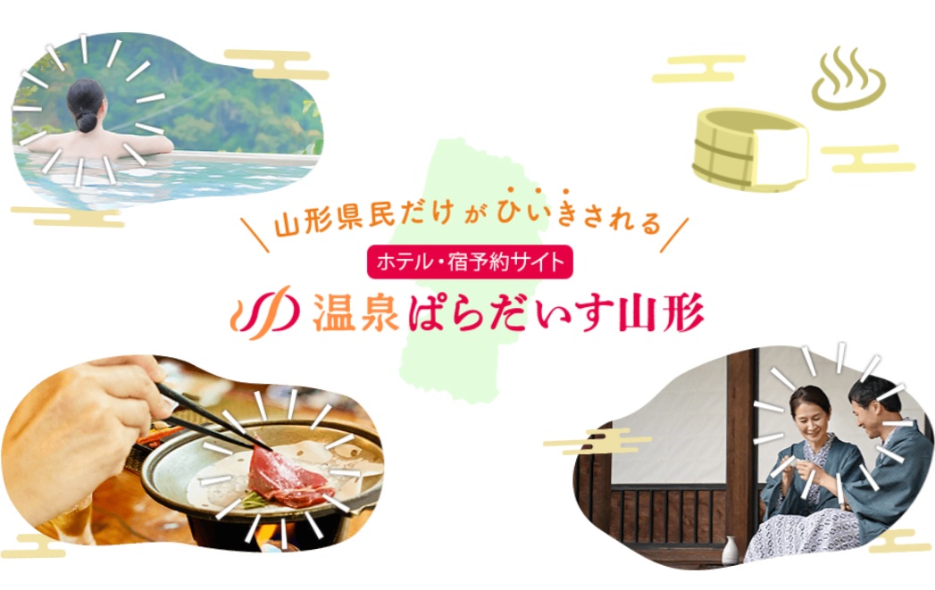 「温泉ぱらだいす山形」は、山形県在住の方のみが利用できるホテル・宿予約サイトで、すべてのプランが山形びいき。山形県民限定の特別価格でお得なホテルや旅館の情報をお届け。プレオープン中は会員登録を先行受付中で、本オープンは10月1日(正午)を予定している。