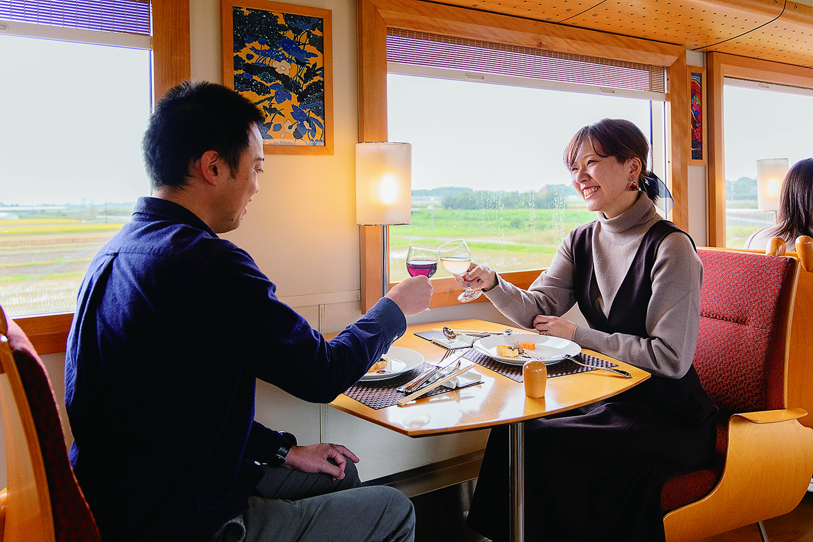お料理は鹿児島県出水市の「シェカシワギ」、熊本県八代市の「旬魚季彩 一誠」の両県の魅力が詰まった料理。西九州海岸の美しい景色とお楽しみください。
